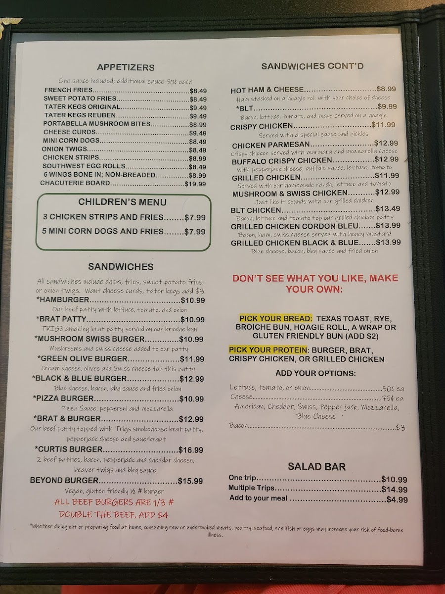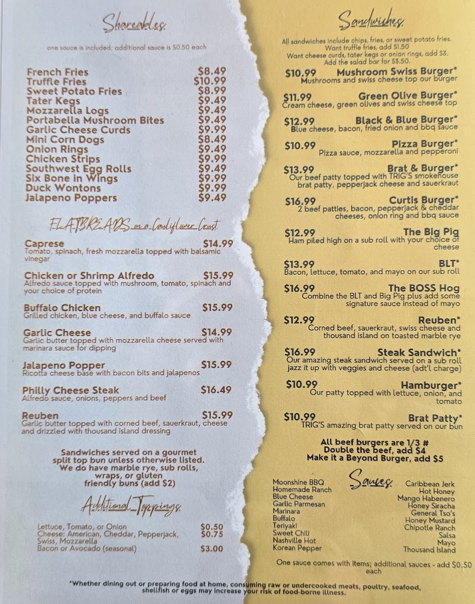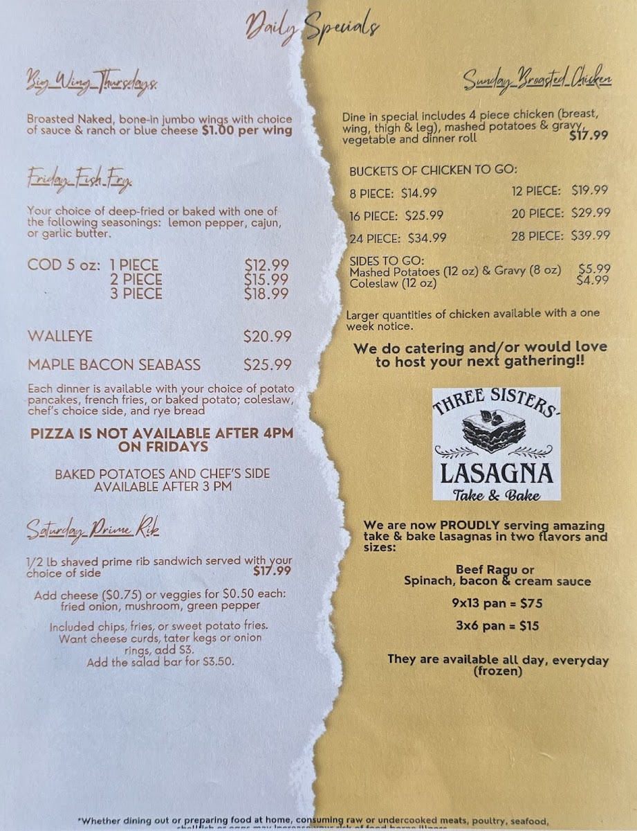 The menu features a variety of shareable bites and main dishes, thoughtfully crafted to match the warmth of the pub’s setting. From crispy Cheese Curds and flavorful Chicken Wings to the popular Fish Fry—offered both baked and fried—these dishes are ideal for winding down after a day outdoors or gathering for a low-key meal.